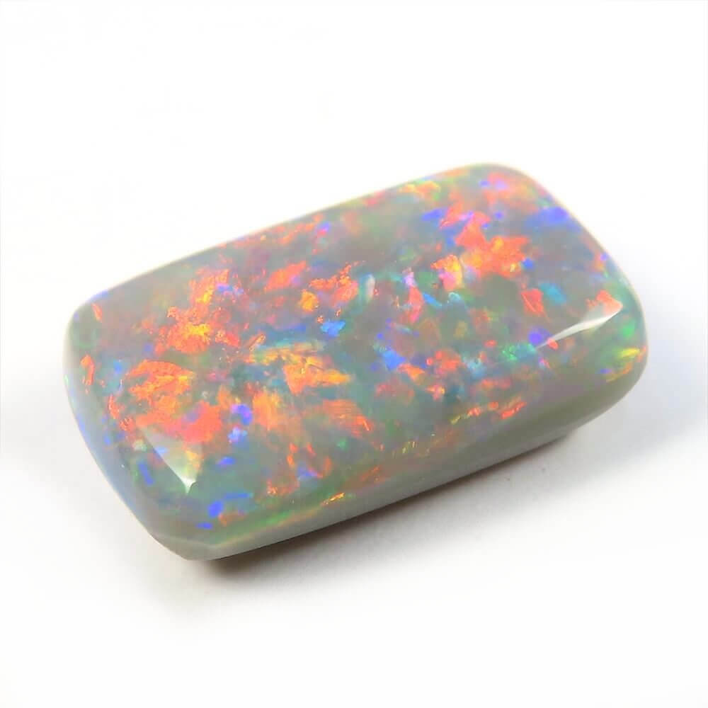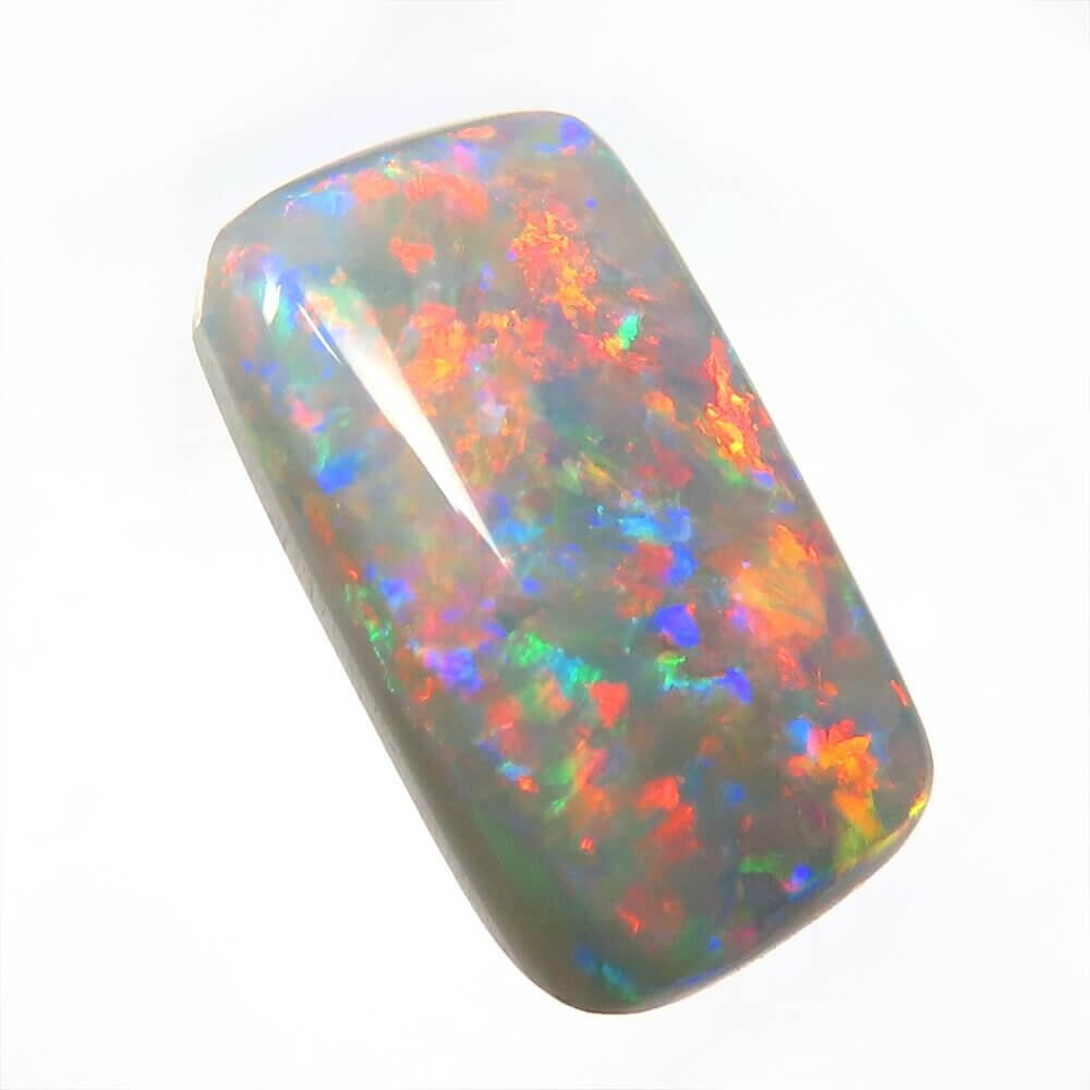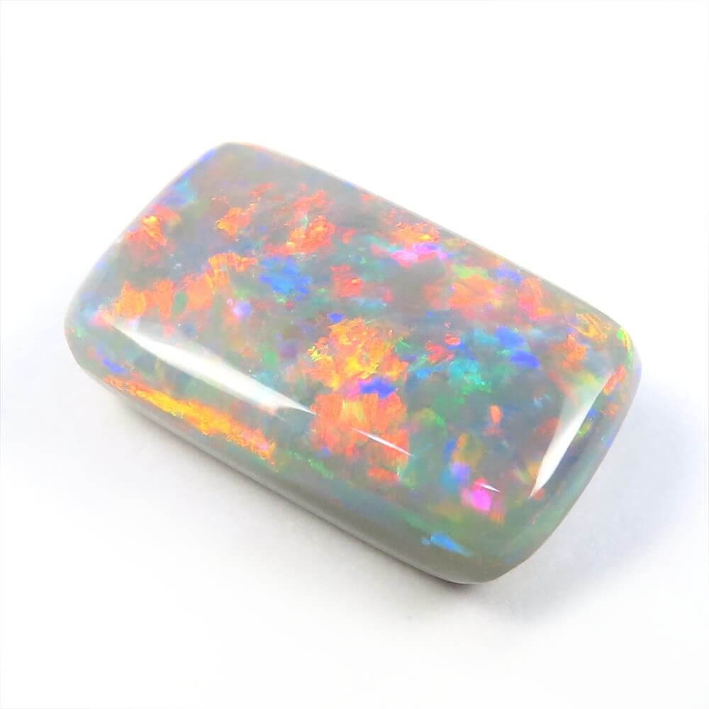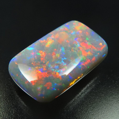 カラフルで明るい斑が、柔らかな地色の上で踊る、個性的で美しい ライトニングリッジ産ブラックオパールです。