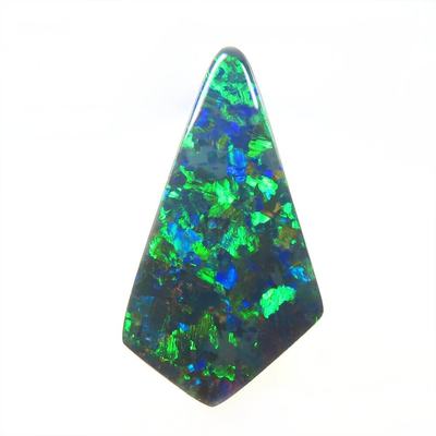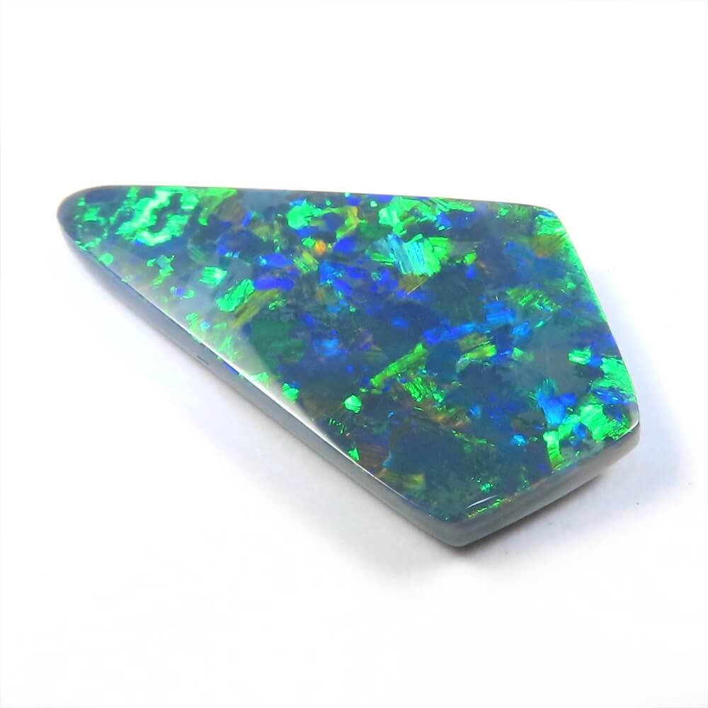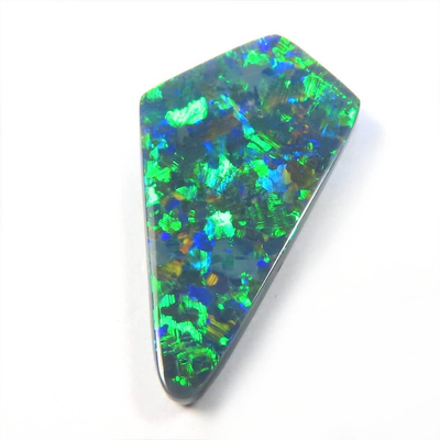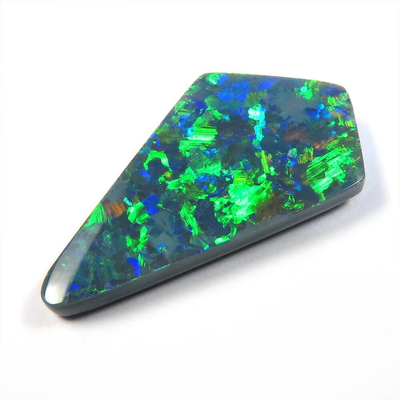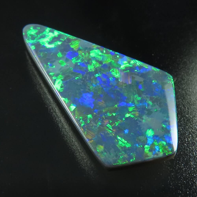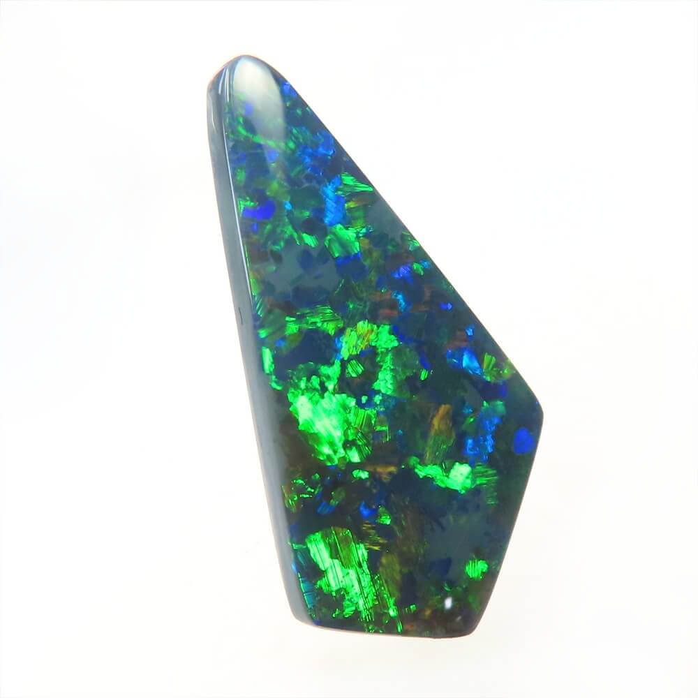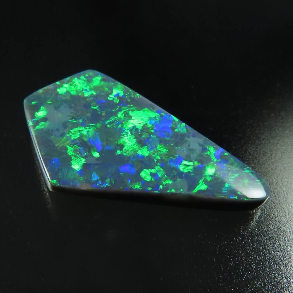 カラフルで深みのある斑が大きく踊る、個性的でたいへん美しい ライトニングリッジ産ブラックオパールです。