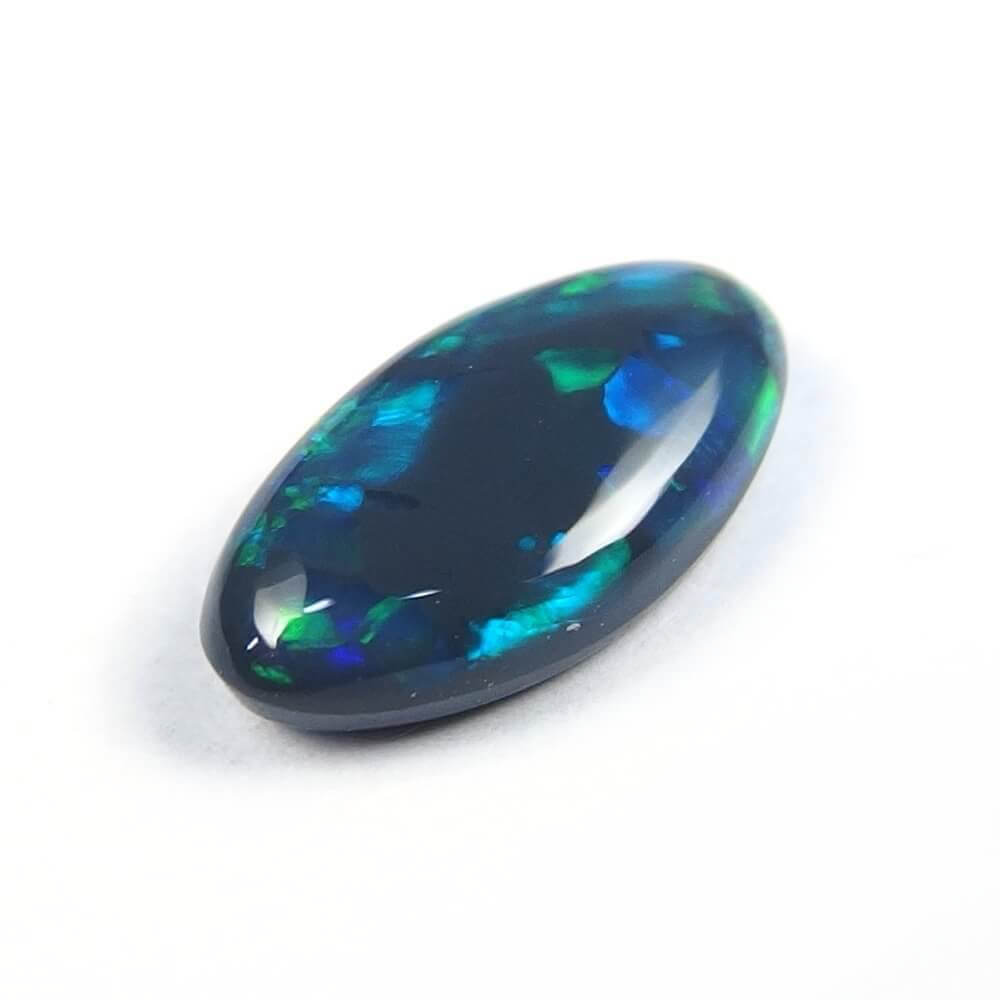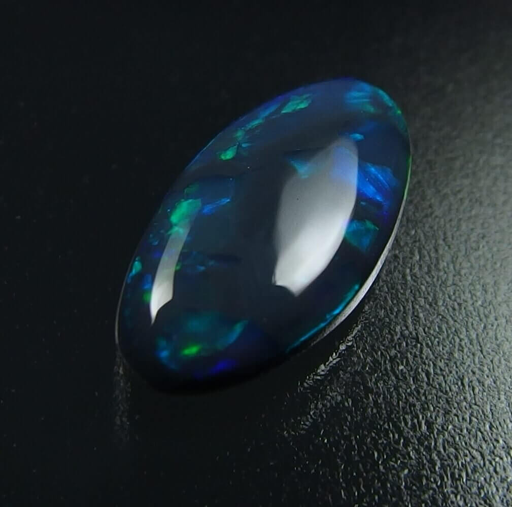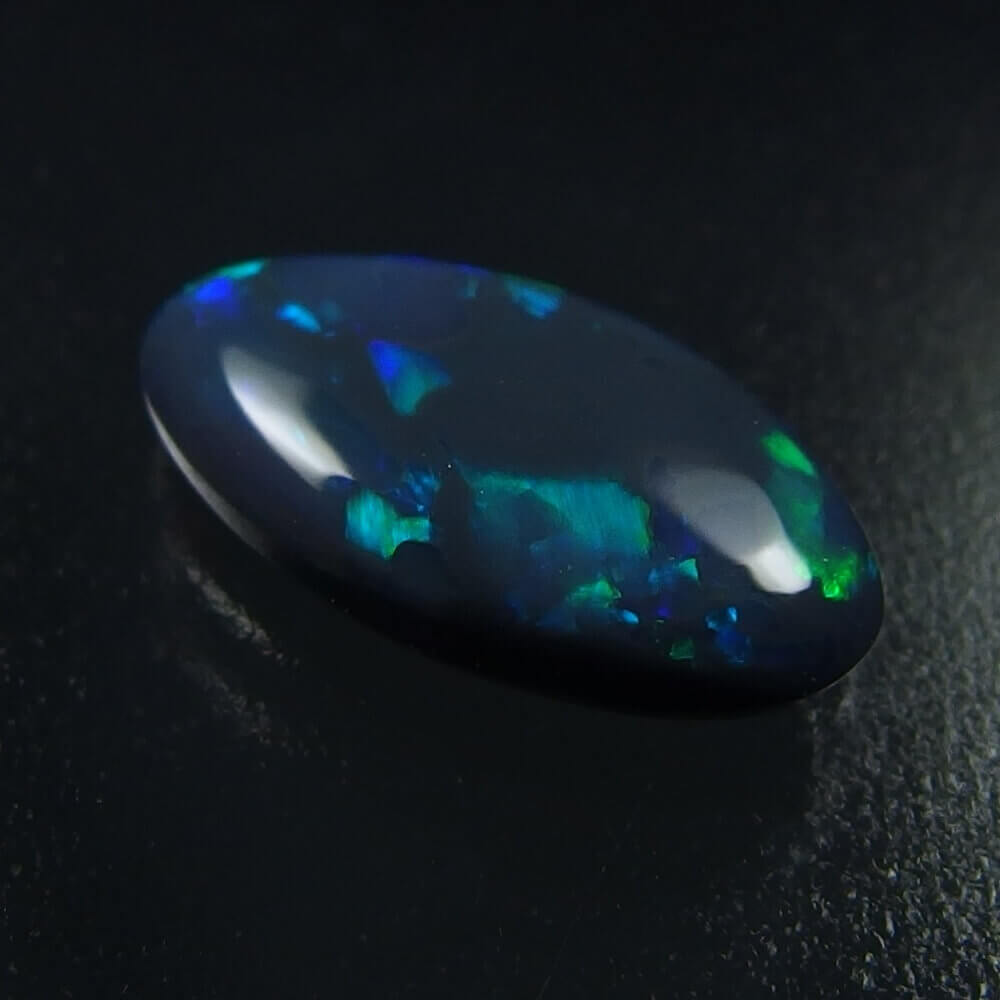 深みのあるブルーとグリーンの斑と、ポッチの織り成す表情が個性的で美しい ライトニングリッジ産ブラックオパールです。