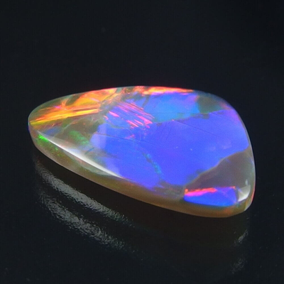 ギラギラ眩しいカラフルな遊色を見せてくれる、クリスタル系の個性的で美しい ライトニングリッジ産ブラックオパールです。