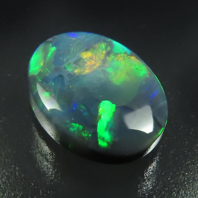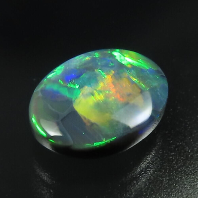 明るく色彩豊かな表情を見せてくれる、たいへん美しい ライトニングリッジ産ブラックオパールです。