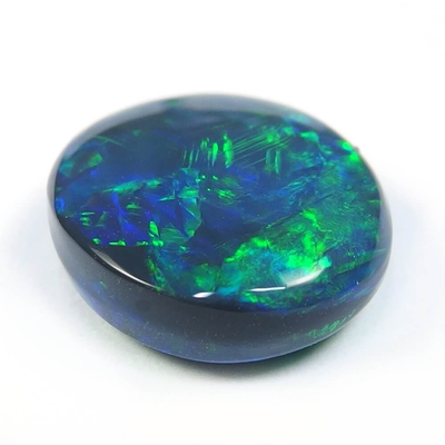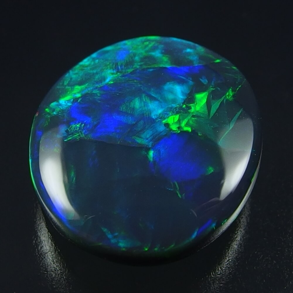 メタリックな遊色がビカビカ眩しい、厚いオパール層の奥から浮かび上がる表情が美しい ライトニングリッジ(Mulga)産ブラックオパールです。