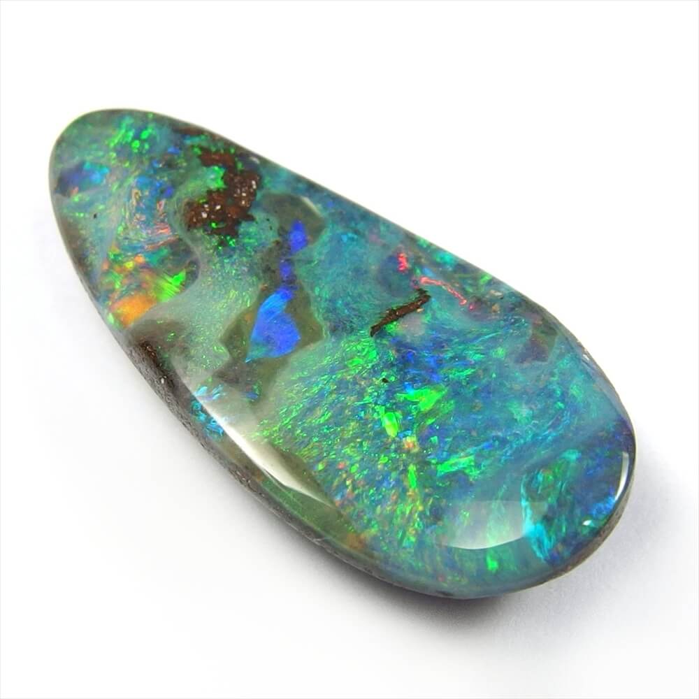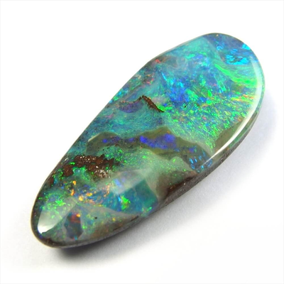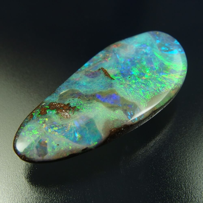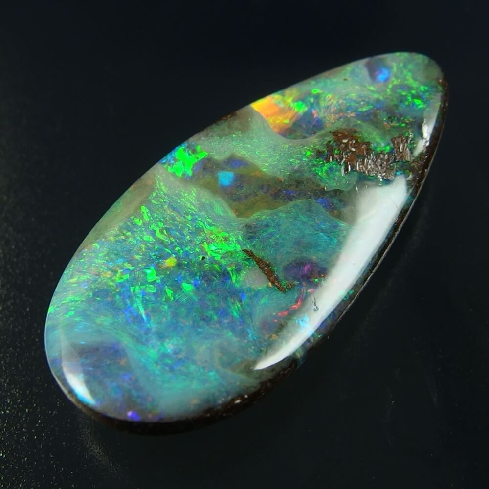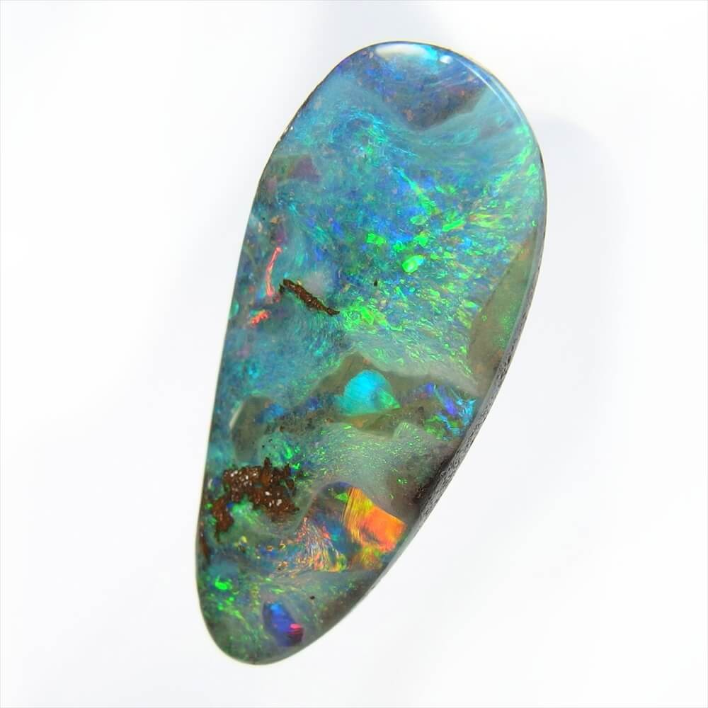 カラフルな色合いがちりばめられた明るい表情が美しい Queenland 産のボルダーオパールです。