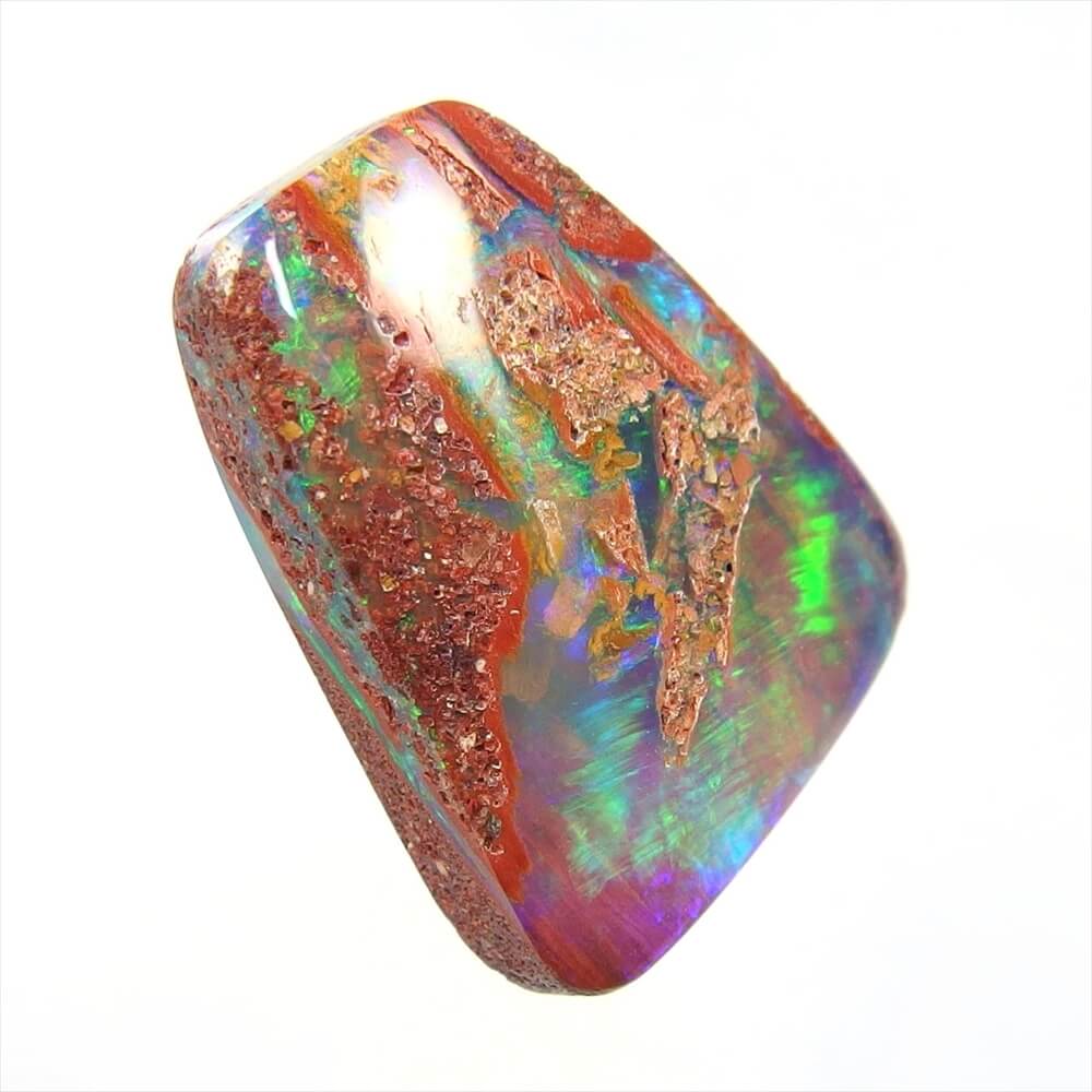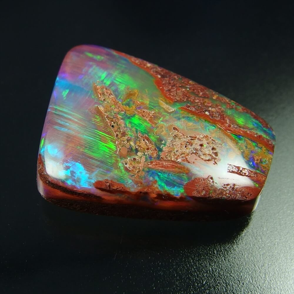 オパール層が普通のボルダーオパールよりも厚く、大きな遊色が湧き上がる、とても美しい表情を見せてくれます。