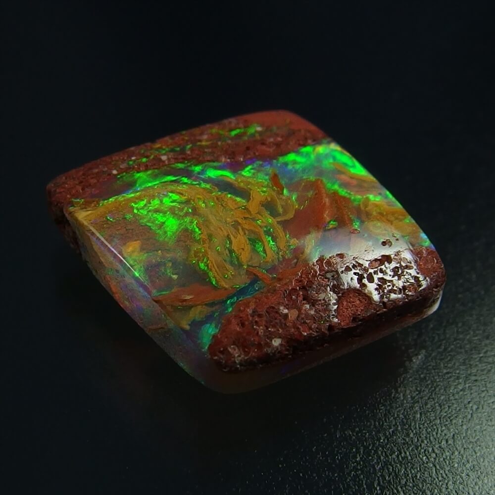 オパール層が普通のボルダーオパールよりも厚く、大きな遊色が湧き上がる、とても美しい表情を見せてくれます。