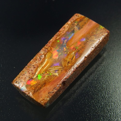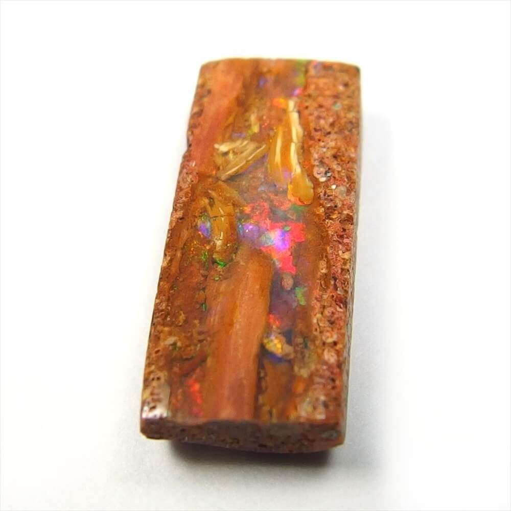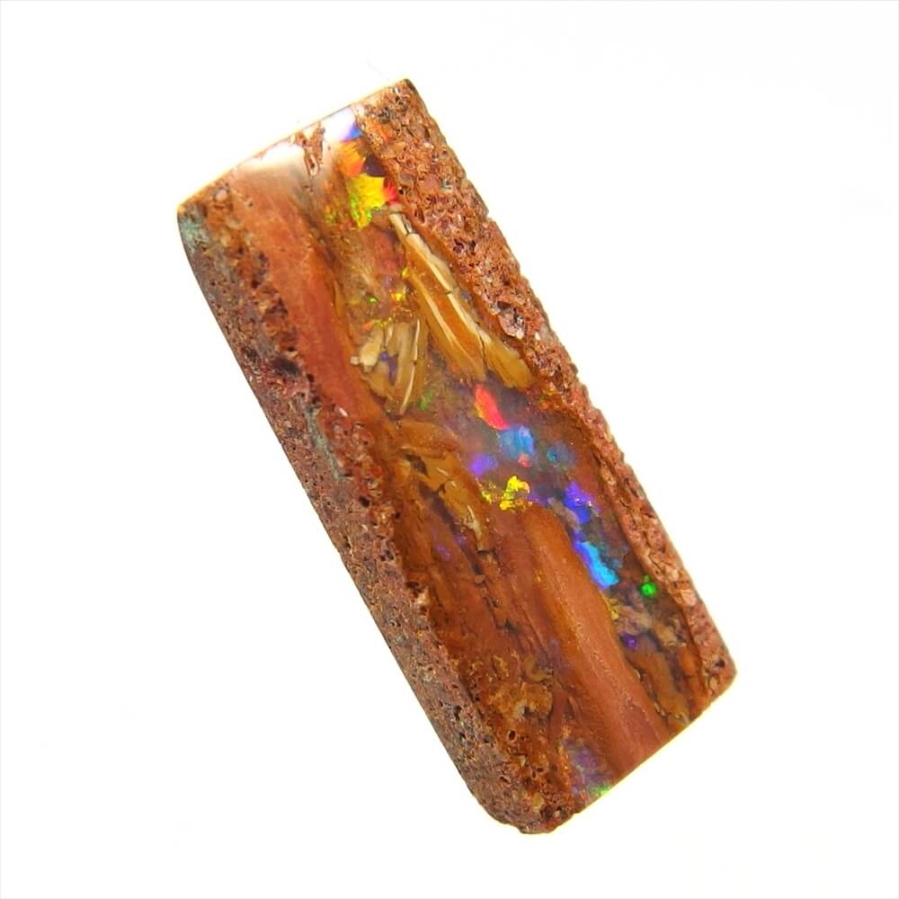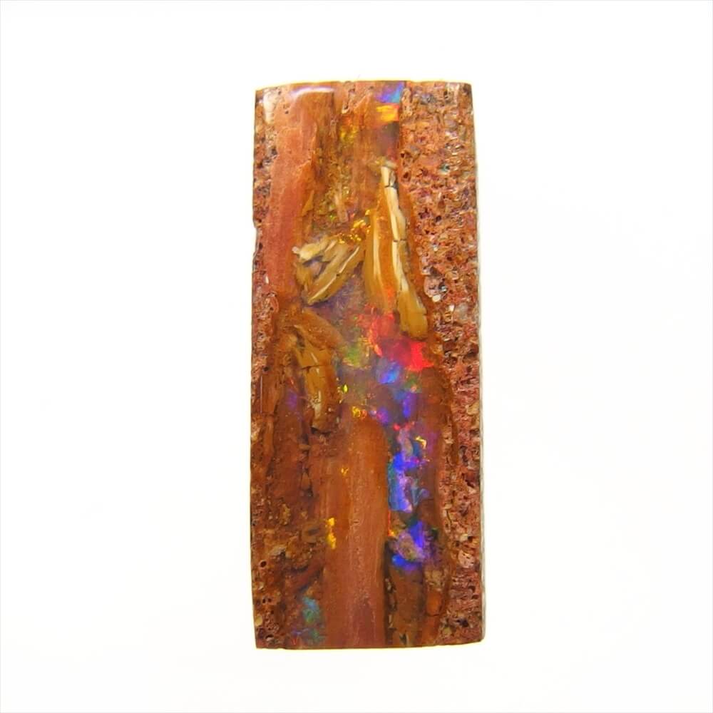 母岩に守られるように包まれた、オパール層の中に柔らかな遊色が踊る Araluen, Queensland産 ウッドオパールです。