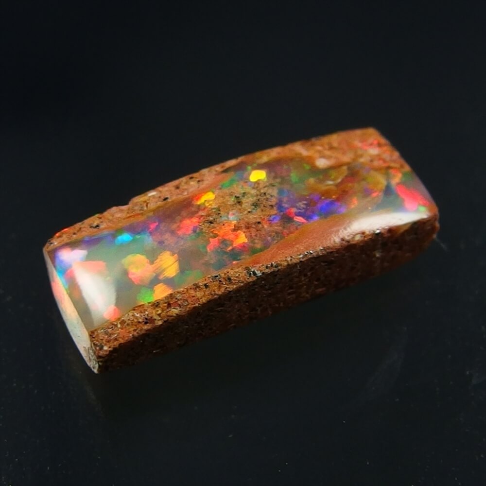 母岩に守られるように包まれた、オパール層の中に柔らかな遊色が踊る Araluen, Queensland産 ウッドオパールです。