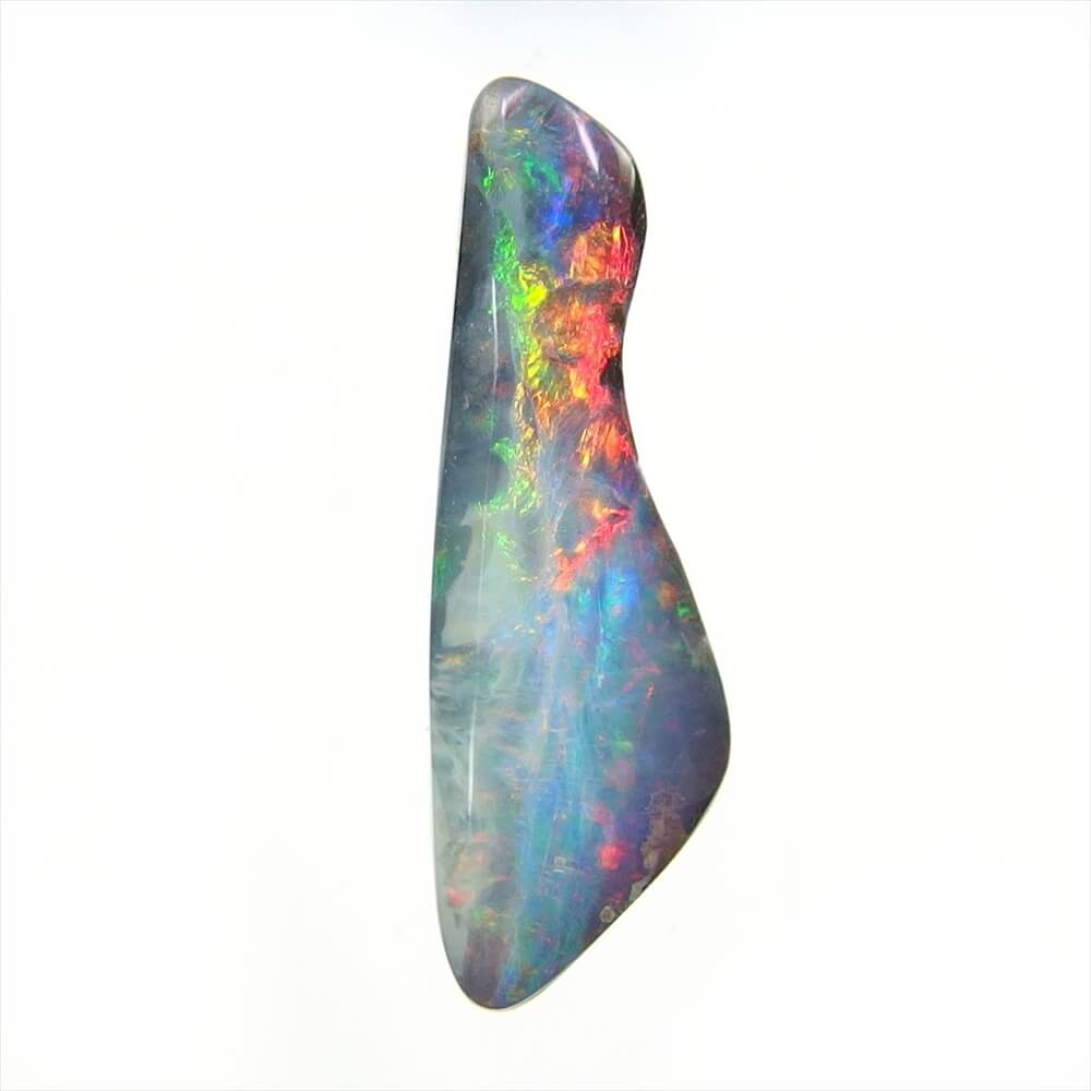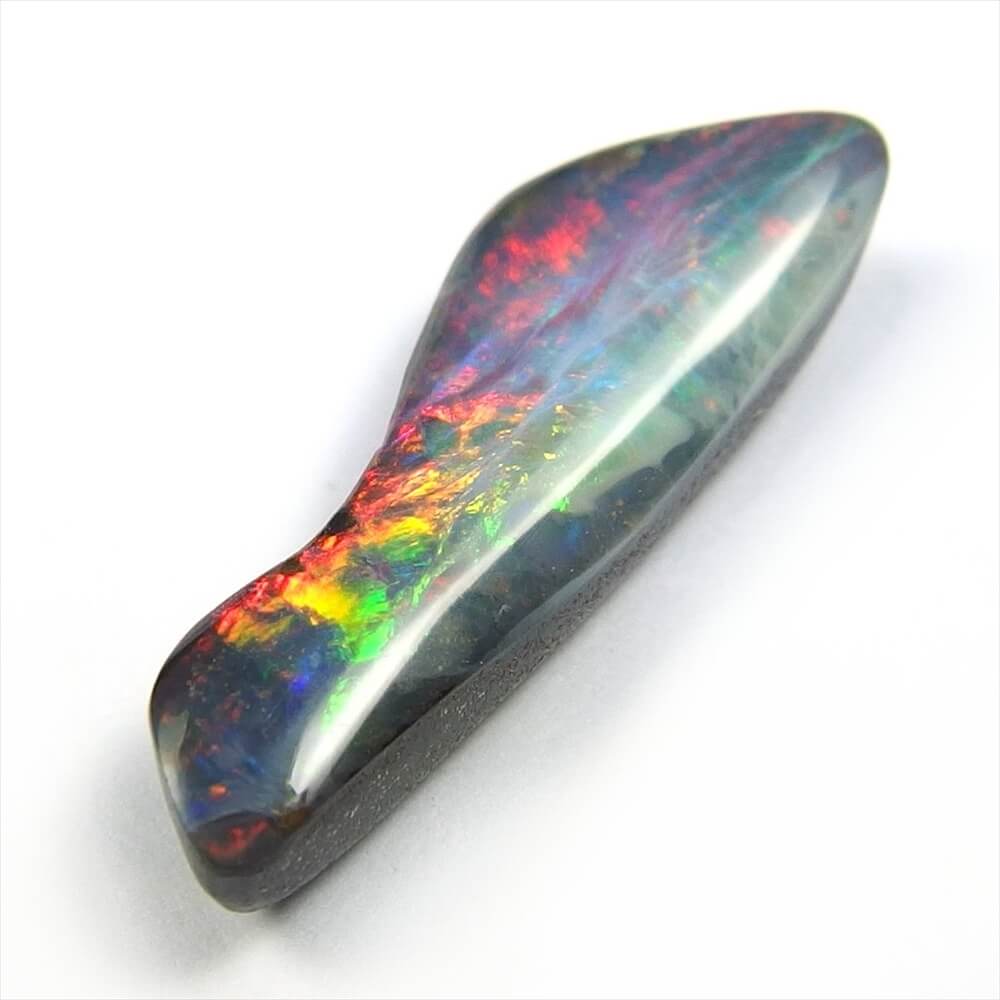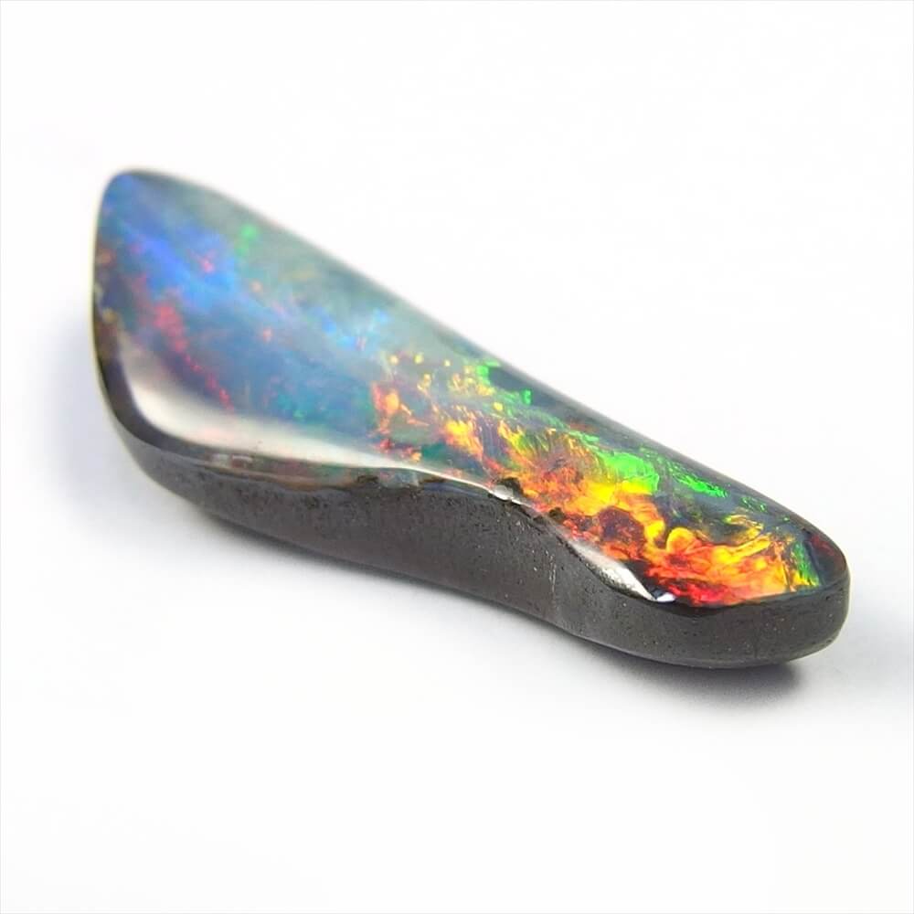 個性的なシェイプに踊る、カラフルな遊色が美しい Quilpie, Queenland 産のボルダーオパールです。