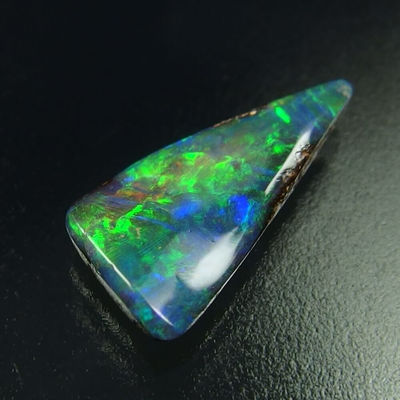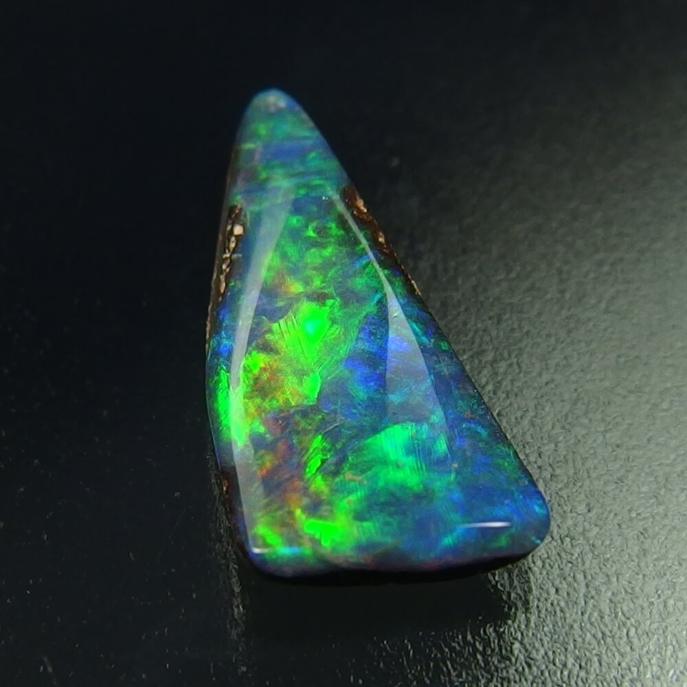 カラフルな遊色が湧き上がってくる、明るく美しい Queenland 産のボルダーオパールです。