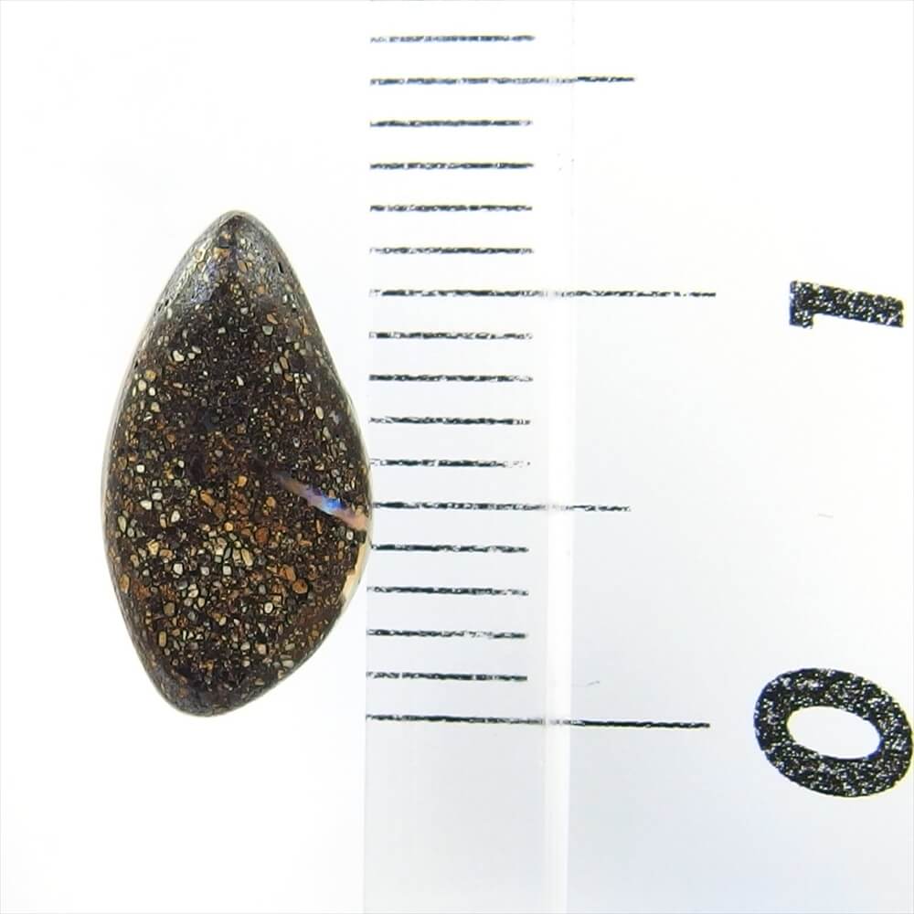 オパールの大きさを、縦 (長径) x 横 (短径) x 厚さの順に mm (ミリメーター) で表しています。サイズ表記のないもの、N/Aとなっているものは、不定形などサイズをお伝えすることができないものです。定規と一緒に撮影した画像をご用意しておりますので、そちらを参考にしてください。