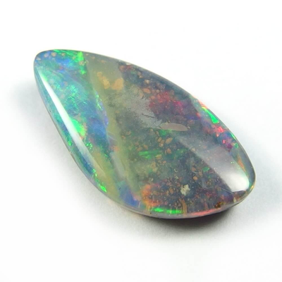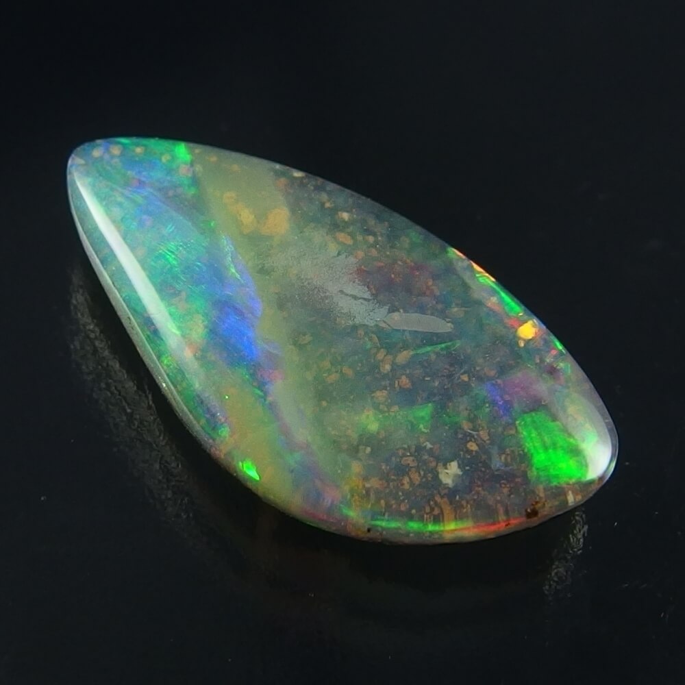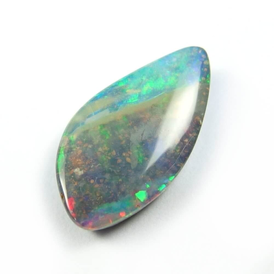 カラフルな遊色がオーロラのように湧き上がってくる、明るく美しい Queenland 産のボルダーオパールです。