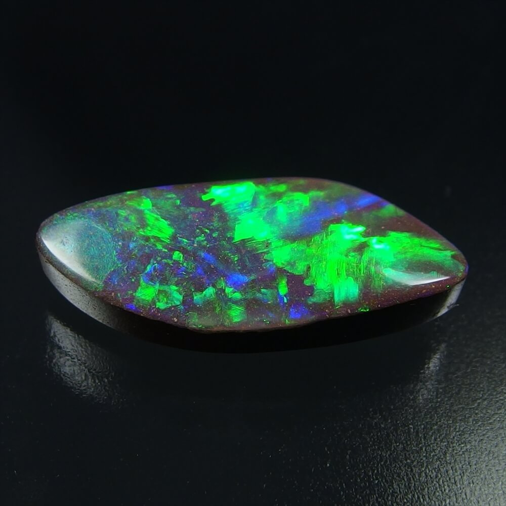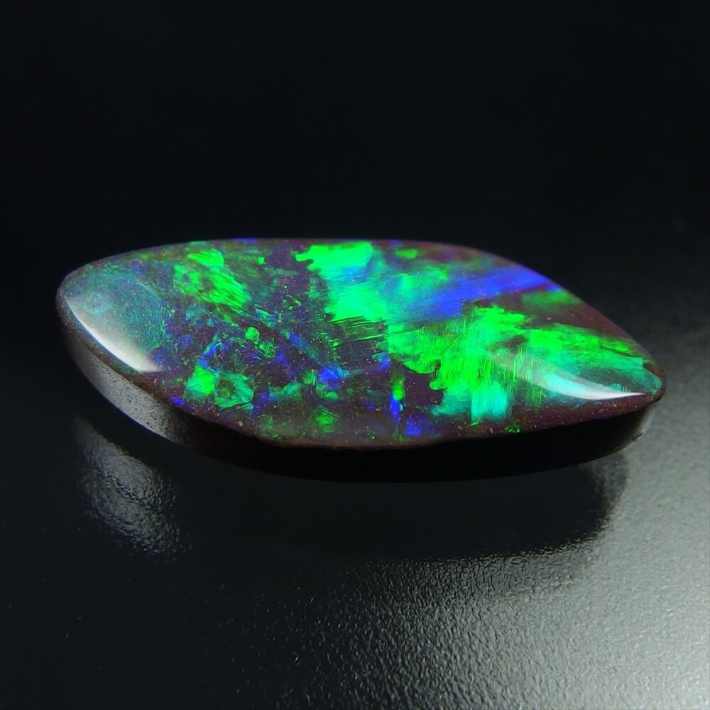 とても強烈なフラッシュがまぶしい、大きな表情を見せてくれる Queenland 産のボルダーオパールです。