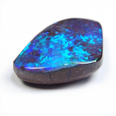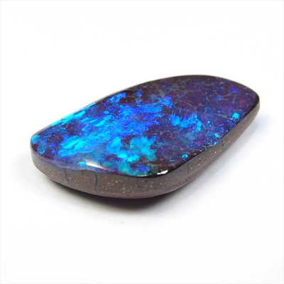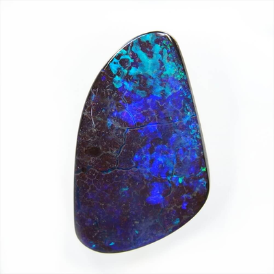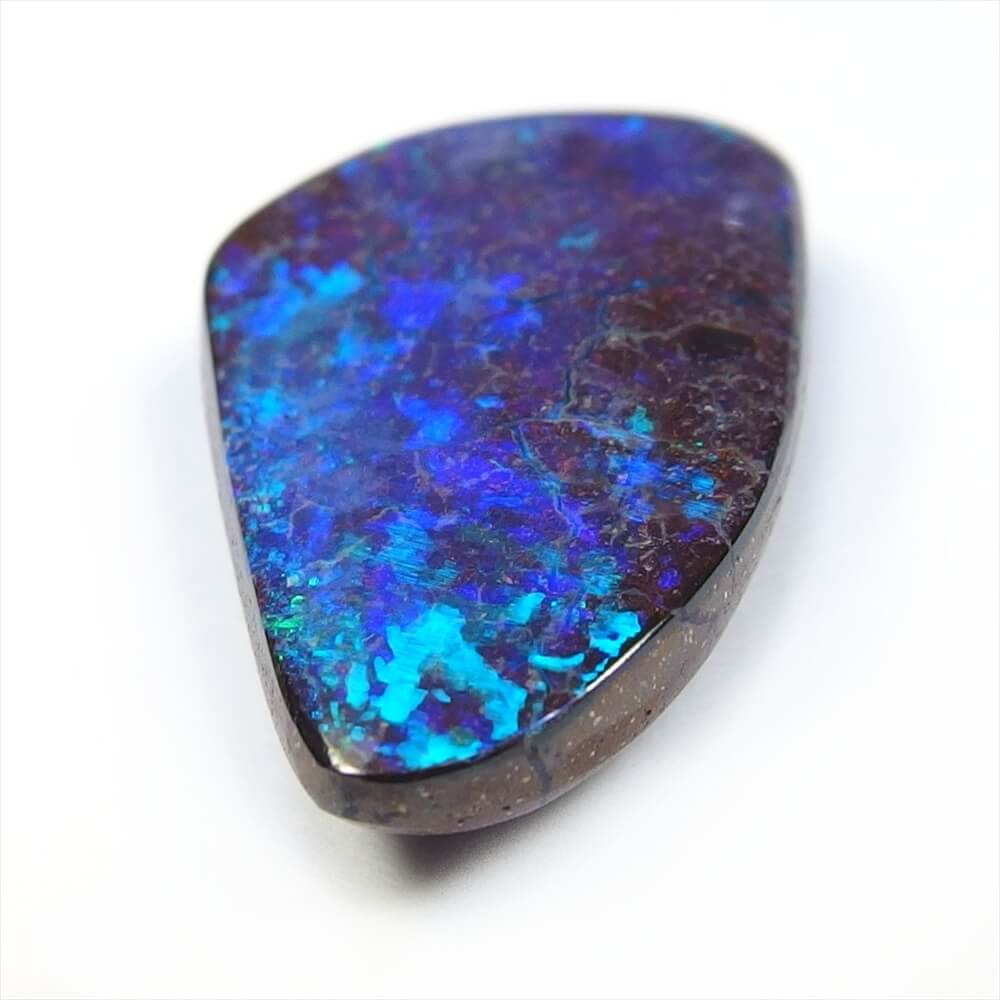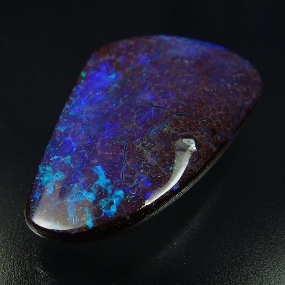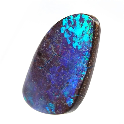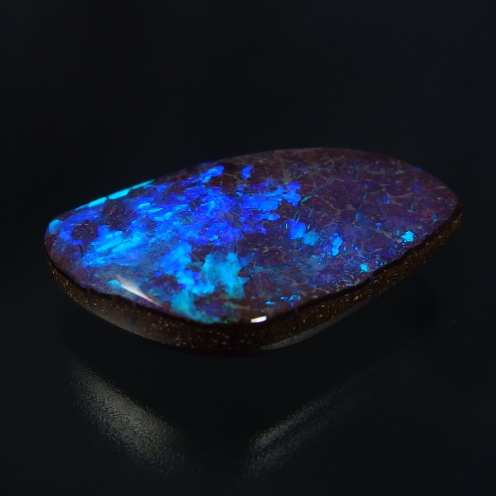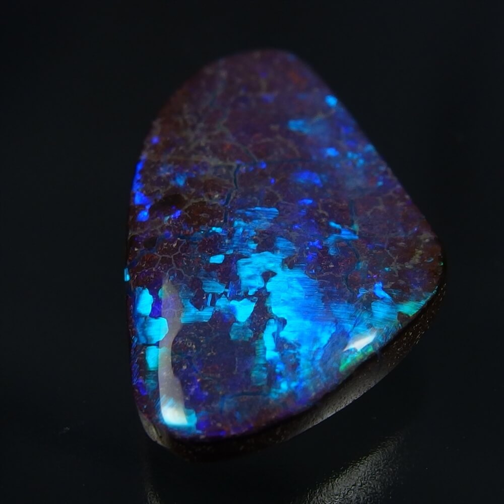 メタリックなブルーとグリーンの遊色が美しい Koroit, Queenland 産のボルダーオパールです。